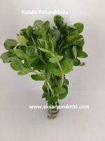 Güneydoğu Asya’da geliştirilen Rotala rotundifolia, uzun, ince yaprakları ve yaprakları da kapsayan 3-4 cm genişliğinde 10-30 uzun sapları vardır. Diğer Rotala türlerinden farklı olarak, kırmızı yaprakları üretmek için iyi bir ışığa gereksinimi vardır. Dalların yanlardan filizlenip yanlara doğru uzadığını çok sık göreceğiniz bir bitkidir. Bu durum şık bir görüntü yaratsa da üstteki dallar ışığın alt yapraklara ulaşmasını engellemektedir. Kuvvetli bir bitki için bitki kökünün de ışık alması gerekli bir durumdur. Bitkinin ışıktan tam anlamıyla yararlanması için sık sık budama yapılmalıdır.